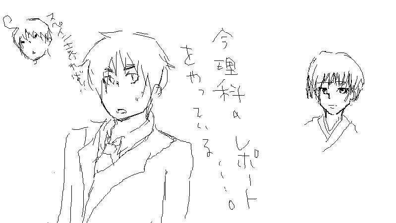 んで、じゃあ描くかってなりまして、右友達、左和喜。てか友達マウスなんだぜ!!信じらんねーよ。どうやって描いてるんだ!?エジプトはゆえ先輩に捧げますw可愛くなりませんでした、格好よくもなりませんでした(泣)。そしてここで友達が退出。密はこれ描いてる途中にやってきた。